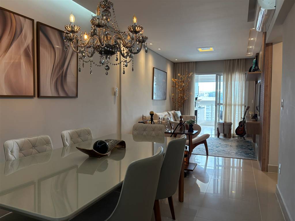 A cozinha, sala e varanda são totalmente integradas, proporcionando uma sensação de amplitude e fluidez entre os ambientes. O acabamento em porcelanato e o aquecimento a gás complementam a proposta de qualidade e conforto.