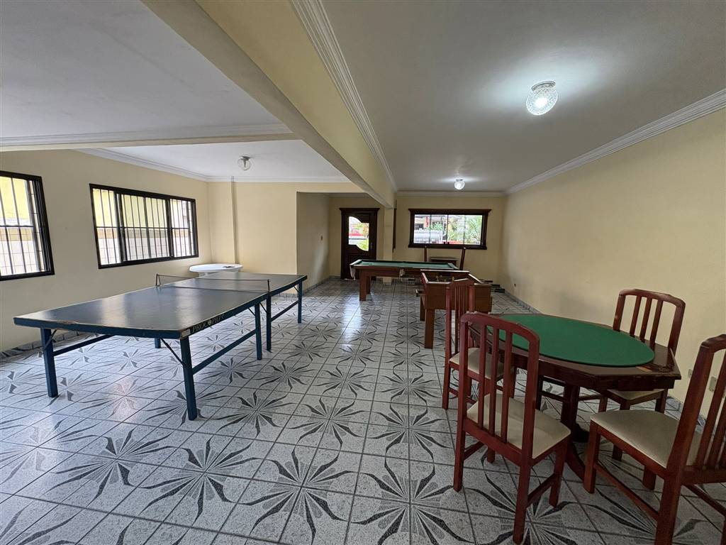 Prédio com elevador e salão de jogos.